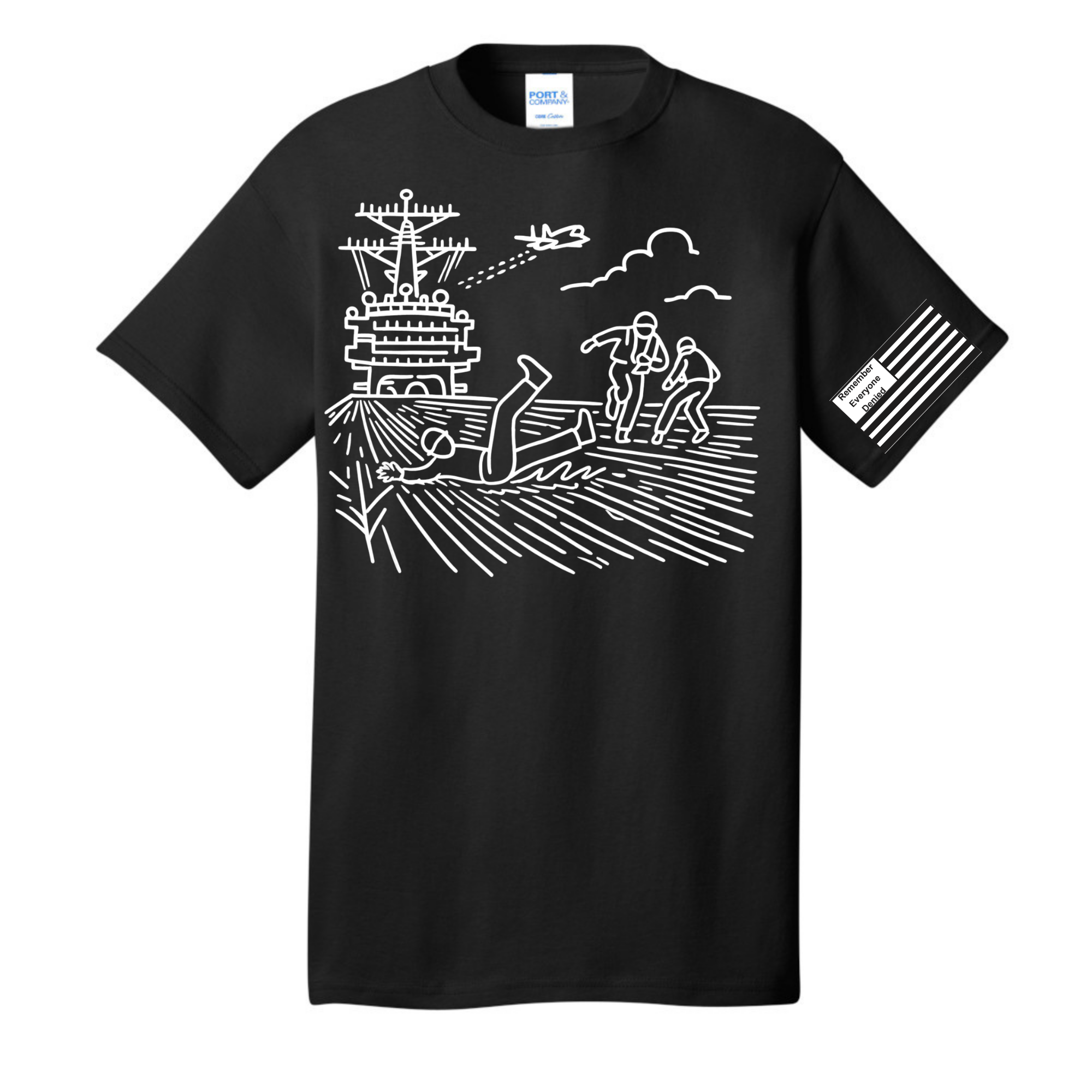 Ride the waves with our #NotServiceConnected “Deck Slide” T-shirt, featuring a sailor sliding across the deck of an aircraft carrier during a storm. This dynamic design captures the unpredictable and dangerous conditions sailors endure while serving at sea.